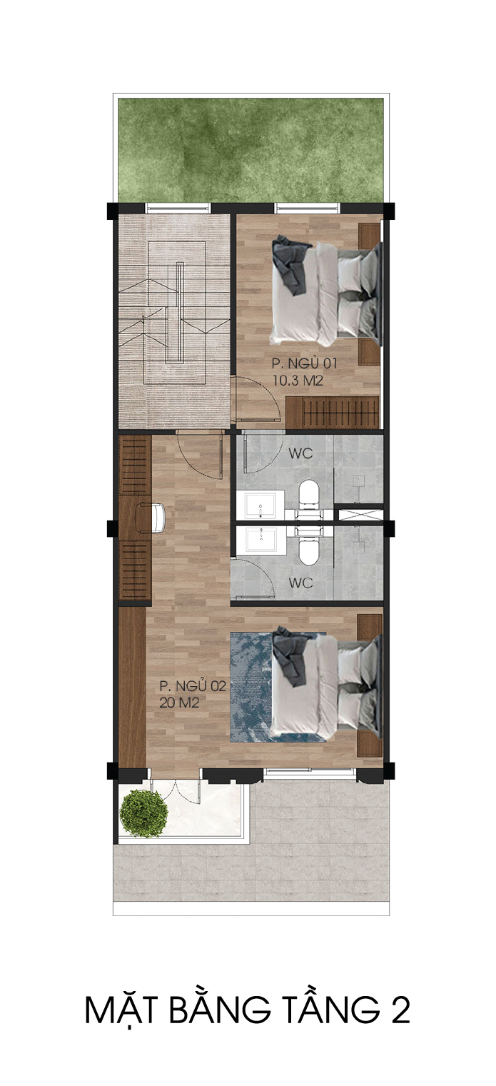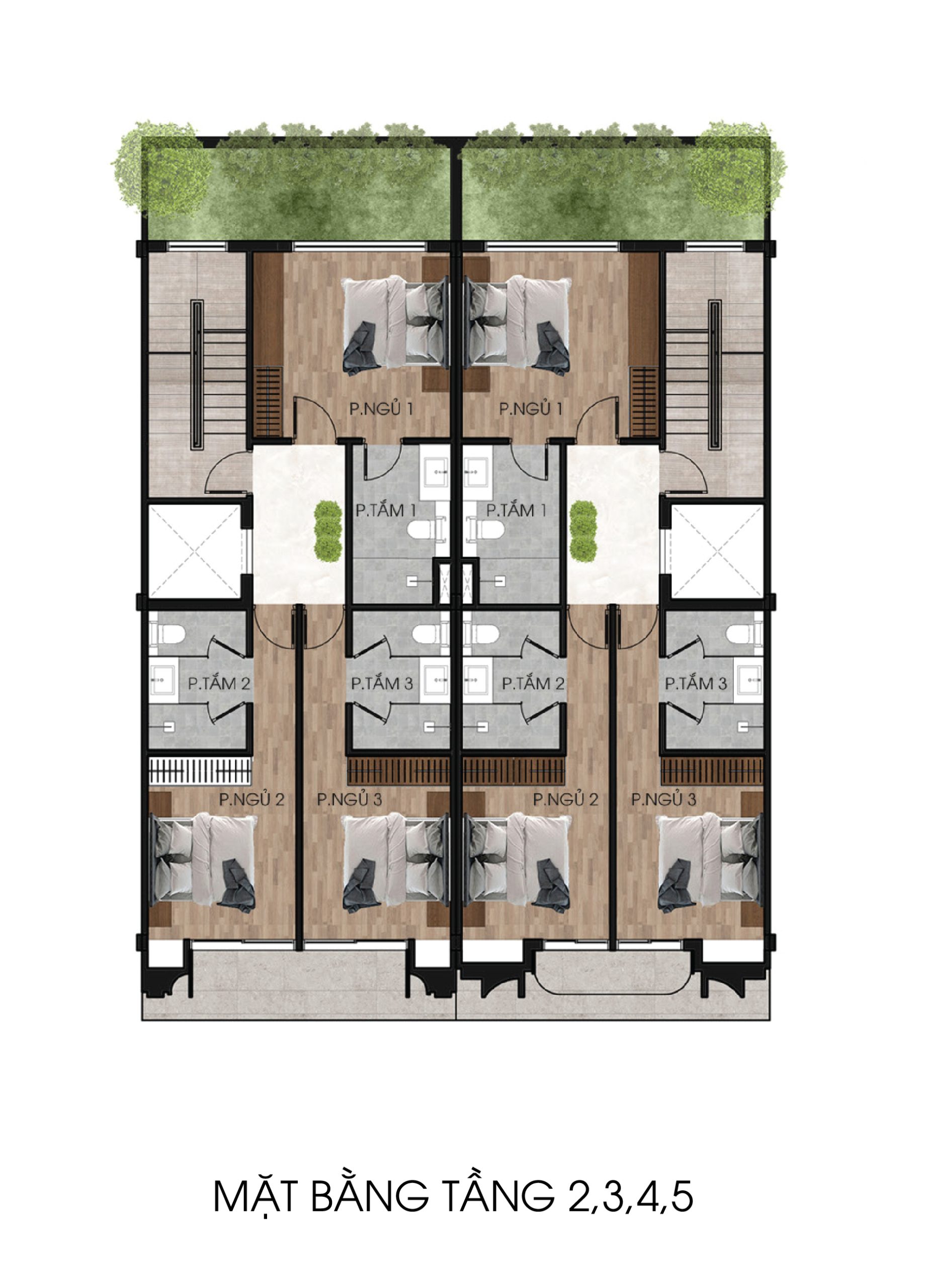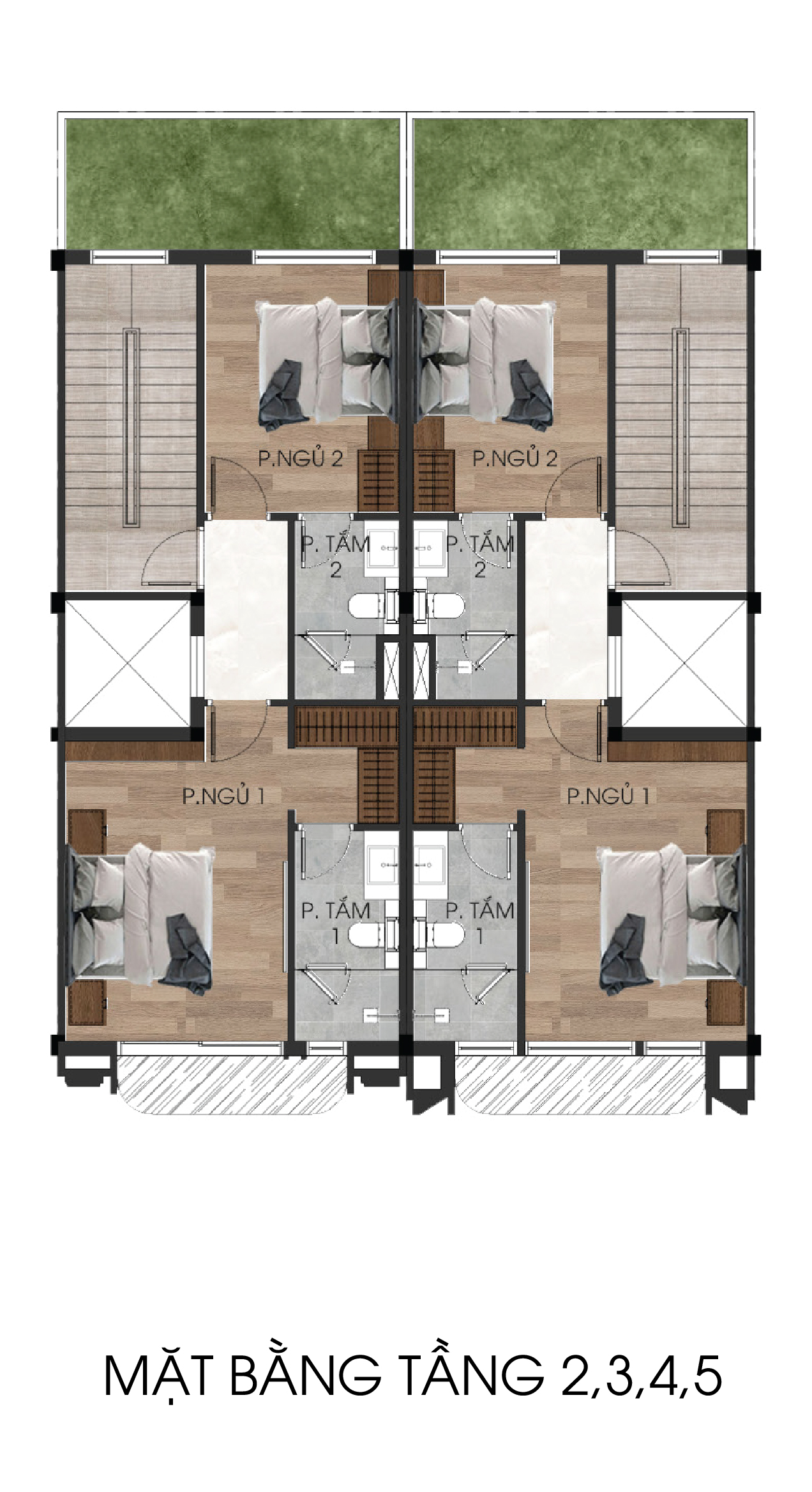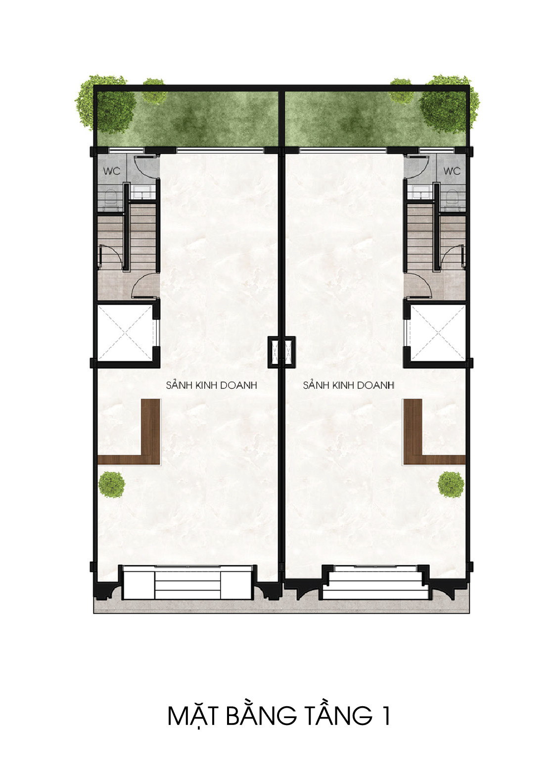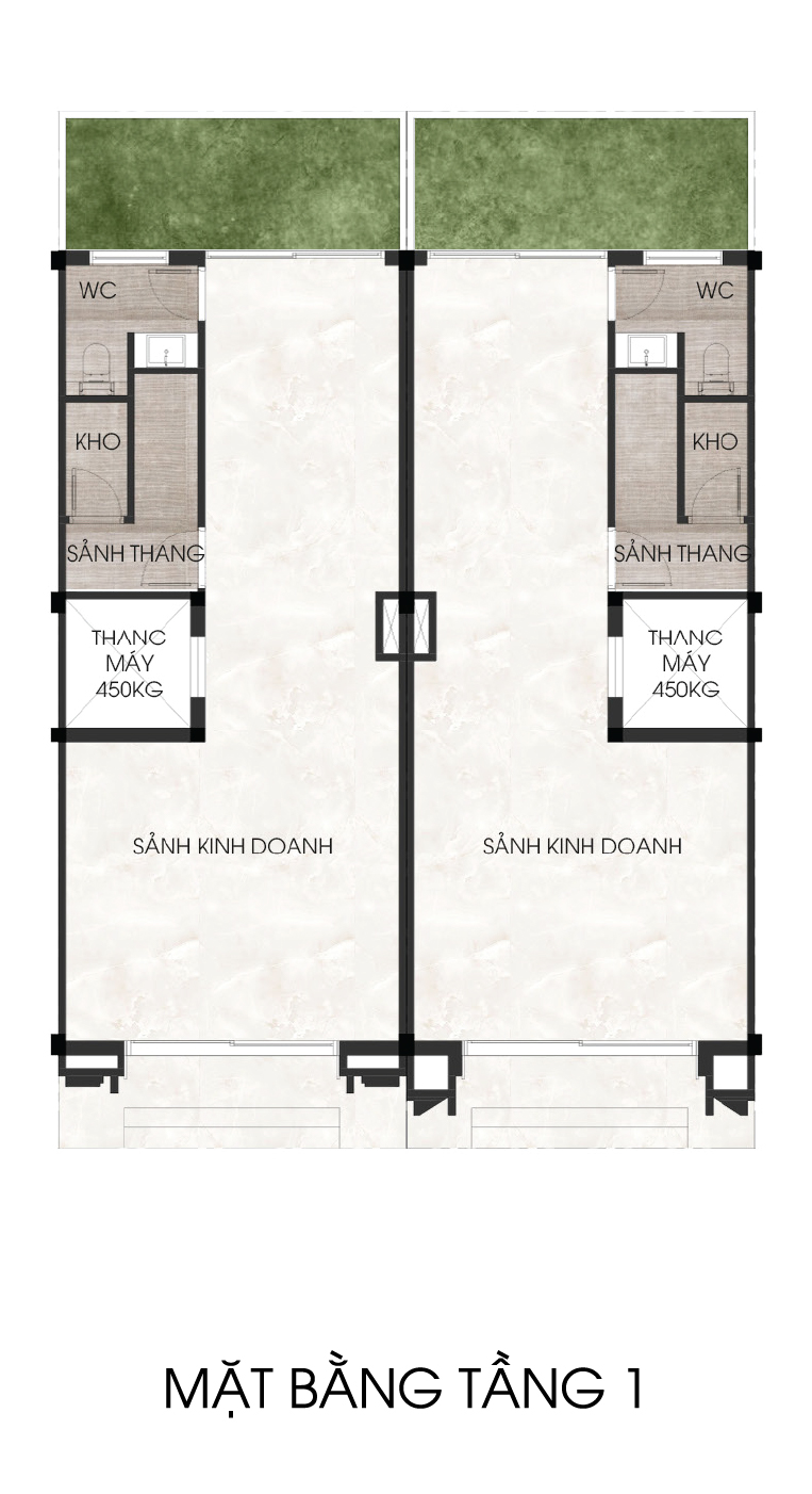 Các căn shophouse (5 tầng) sở hữu mặt tiền rộng, tối ưu khai thác thương mại. Thiết kế linh hoạt hỗ trợ đa dạng mô hình kinh doanh, dịch vụ và lưu trú, nâng cao hiệu quả đầu tư bền vững.